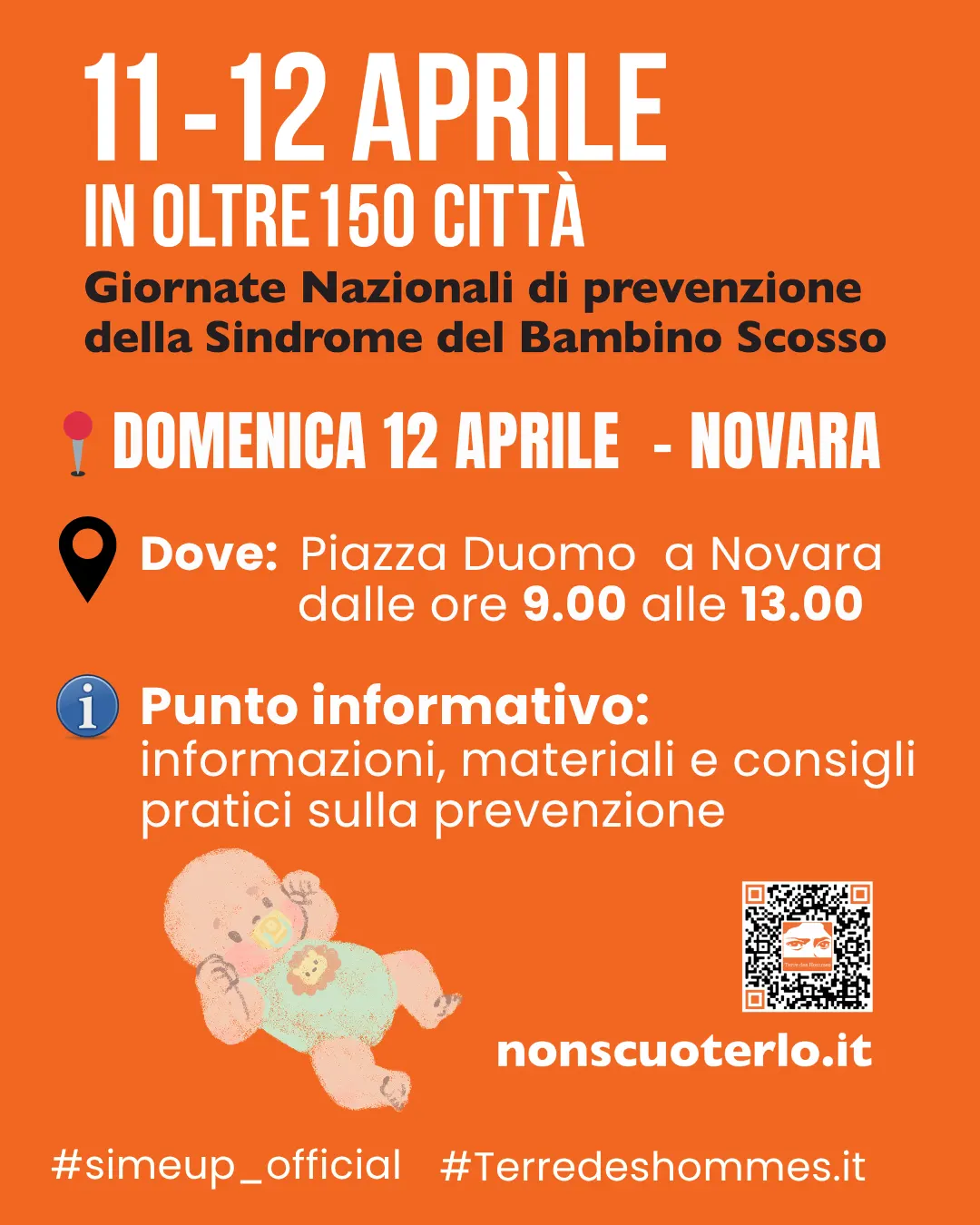 Torna anche a Novara la campagna nazionale “Non scuoterlo!”, dedicata alla prevenzione della Sindrome del Bambino Scosso, un’iniziativa promossa da Terre des Hommes e SIMEUP, con il supporto della Società Italiana di Pediatria, ANPAS, FIMP e della Rete Ospedaliera contro il Maltrattamento Infantile.
