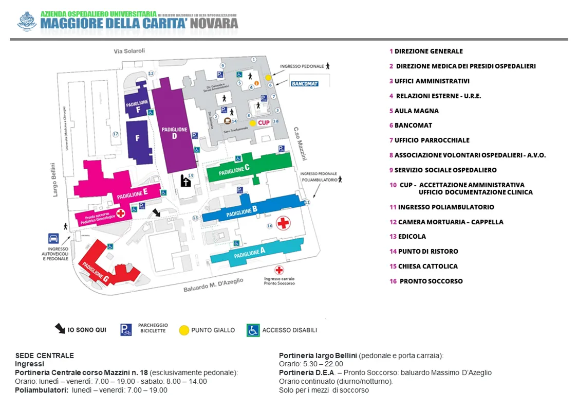 A Novara la sede ospedaliera centrale e la sede distaccata sono situate nel centro della città facilmente raggiungibili sia con mezzi pubblici che privati.